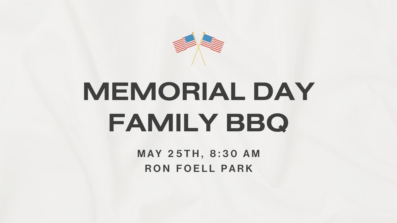 Enjoy an afternoon as we gather on Memorial Day at Ron Foell Park. Bring the whole family and your favorite dish as we come together for an afternoon filled with friends, food, and fellowship. It's a day you won't want to miss, so mark your calendar and we'll see you there!